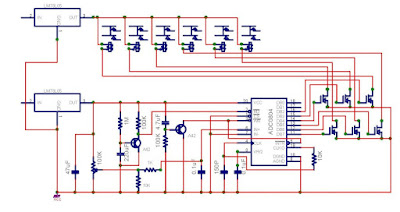 自從Aleph-P完成後,就一直尋找合適的音量控制(4 channels),一般的級進音量控制要價甚昂,實在難以負荷,接著鎖定DipChip Electronics的遙控音量(8bit--256段)與輸入選擇的套件,考慮在三,這筆錢仍然花不下去;後來在Diy-Audio上看到有人仿Aleph-P 1.0版的方式以一顆 ADC0804做6階--64段的音量控制,雖然沒有遙控,但想想也沒太大關係,於是抱著姑且一試的心態,試做如下: